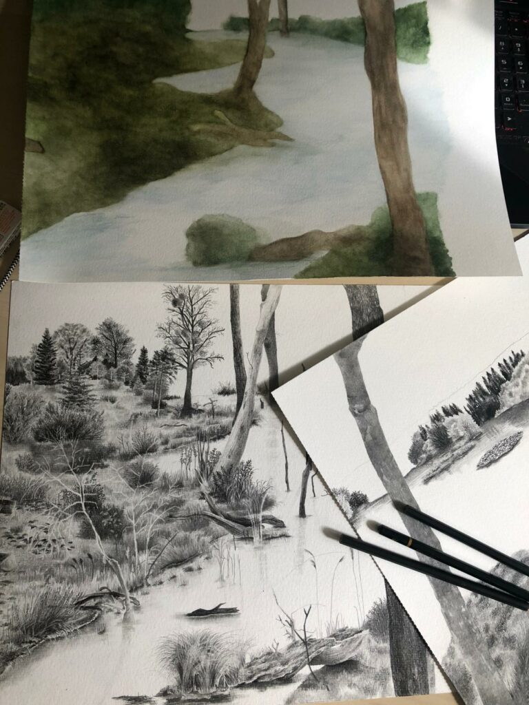 Musée zoologique de Strasbourg, dessins pour le biotope forêt de la fresque immersive